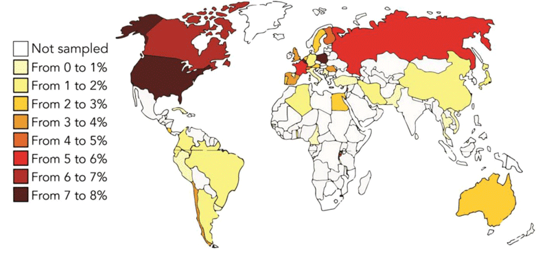 図2 バーンアウトしている親のパーセンテージ(国別)